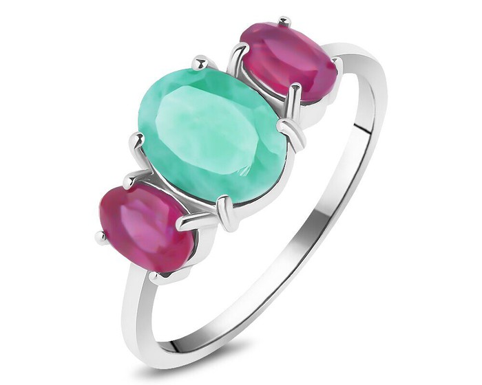 Кольцо, арт.658450 Серебро Серебро 925, р. 17, 2,24 гр., изумруд берилл , рубин корунд