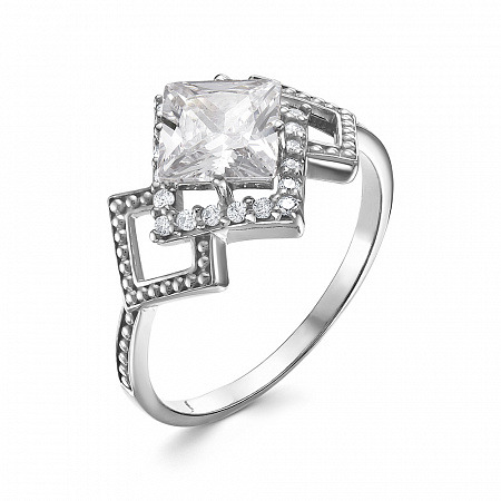Кольцо с фианитом родированное серебро 925*
