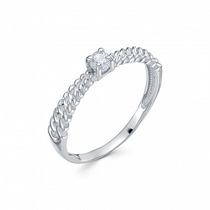 Кольцо с фианитом родированное серебро 925*