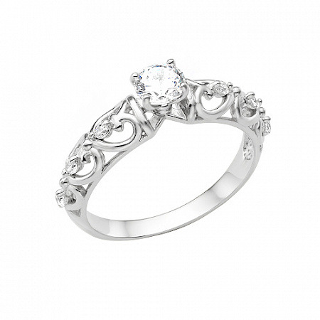 Кольцо с фианитом родированное серебро 925*