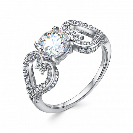 Кольцо с фианитом родированное серебро 925*