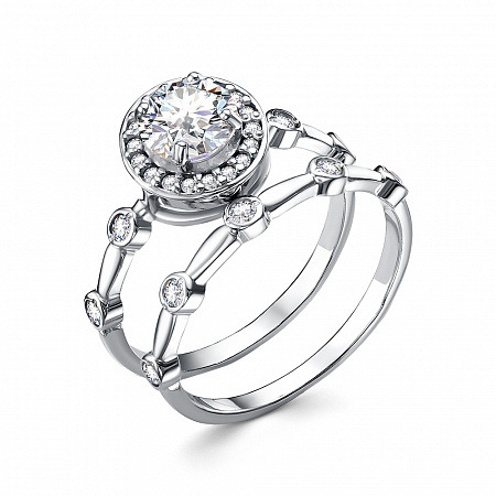 Кольцо с фианитом родированное серебро 925*