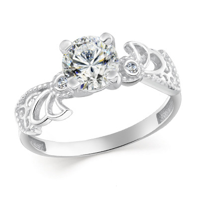 Кольцо с фианитом родированное серебро 925*