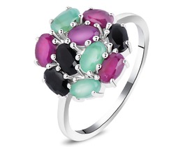 Кольцо, изумруд берилл , рубин корунд , сапфир корунд, Алира