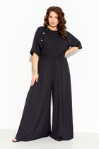 Комбинезон полуприлегающего силуэта, на передних частях обработаны нагрудные вытачки и клапаны, потайная застежка планка на петли и пуговицы, спинка с кокеткой, по центру складка на свободу движения.