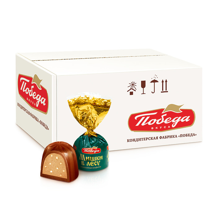 Конфеты «Мишки в лесу» на протяжении нескольких поколений являются символом семейного праздника и уютного чаепития в кругу самых близких. Рецепт этих шоколадных конфет от "Победы" – это насыщенная молочно-шоколадная начинка с хрустящим криспом в оболочке из нежного молочного шоколада.