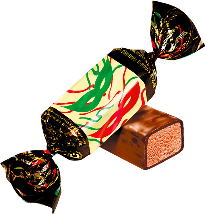 Карнавальные фантики этих конфет знакомы многим, благодаря новогодним наборам. Но конфетами «Маска» можно лакомиться и без всякого повода! Ароматное в меру сладкое пралине с добавлением какао, бархатной текстурой и яркими нотками арахиса во вкусе, покрытое волнистой молочно-шоколадной глазурью. Праздничное настроение в каждой конфетке.