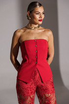 Капсула RED CODE - Ваша формула смелого праздника. Она создана для особых случаев включает в себя жакет, корсет и брюки, создавая элегантный и стильный образ. Корсет приталенного силуэта с центральной застежкой на пуговицы, идеально подчеркивающий фигуру и создающий элегантный контур. В вертикальные рельефы по переду и спинке, а также в боковые швы вставлен регилин, что обеспечивает дополнительную поддержку и формирует красивую линию талии. Низ корсета имеет фигурную форму, добавляя изысканности и утонченности. Корсет выполнен на подкладке, что гарантирует комфорт при носке и улучшает посадку на теле.