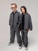 Костюм для мальчика. Футболка из бежевой кулирки пенье, принт буквы, черные шорты из кулирки