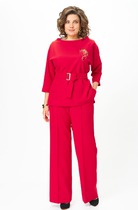 Костюм женский. В комплект входит футболка с рукавом 3/4 и бриджи ниже колен, без карманов. По переду асимметрия из двух видов ткани.