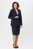 Костюм женский из кулирного полотна состоит из кофты и брюк. Кофта прямой силуэт, горловина круглая, по центру планка с застежкой на петли-пуговицы, рукав втачной 3/4, низ обработан на плоскошовной машине, на полочке принт. Брюки прямые, верх на поясе с резинкой, в боковых швах карманы, низ брюк на манжете.