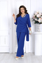 Костюм состоит из брюк и кофты. Брючки на поясе с прорезными карманами в боковых швах, снизу на манжетах. Кофта с длинным рукавом, горловина обработана обтачкой, на полочке печать.