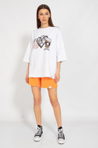 Комплект состоит из кофты и брюк. Кофта свободного покроя. Брюки свободные, с карманами, с манжетами по низу. В пояс вставлен шнурок.
