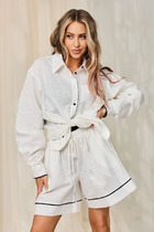 Длинное платье-рубашка с поясом и разрезами изо льна с вискозой