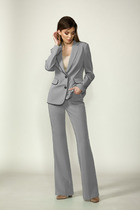 Костюм состоит из туники и брюк. Брюки на поясе, с лампасами из отделочного полотна вдоль боковых швов. Туника полуприлегающего силуэта, с округлой горловиной, длиной до середины бедра. Рукав втачной, длинный, со вставкой из отделочного полотна. Разные расцветки клетки