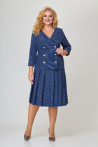 Костюм юбочный,сочетание полоски ,хлопка и трикотажа создает шикарный образ как для работы,отдыха,так и для повседневной жизни.Рубашка женская выполнена из хлопоковый ткани, с отложным воротником на стойке, с центральной застёжкой на петли и пуговицы. полочки с нагрудными вытачками с накладными карманами к клапанами, застёгивающиеся на петли и пуговицы, рукава рубашечного кроя, с притачными манжетами, застёгивающиеся на петли и пуговицы. спинка цельная, по бокам обработаны разрезы. джемпер женский выполнен из премиум трикотажа, свободного силуэта,с V-образным вырезом горловины, со спущеным плечом, рукава 7/8. По полочке серебрянная дизайнерская печать, по низу серебрянная вставка. Спинка со средним швом. Горловина обработана бейкой.Юбка женская асиметричного кроя, из классической костюмной полоски, по переду пояс вставка сошлёвками, по спинке пояс с эластичной резинкой.