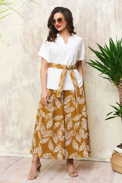 Стильный женский комплект, состоит из блузки и кюлот. Блуза прямого силуэта, выполнена из натуральной ткани с добавлением хлопка, льна и вискозы (мнется не сильно, за счет добавления вискозы), горловина блузки с воротником-стойкой и небольшим V-образным вырезом. Рукав блузки цельнокроеный с манжетой. Кюлоты выполнены из натуральной льняной ткани с добавляем хлопка и вискозы. Кюлоты на поясе с застежкой на пуговицы и молнию, в боковых швах функциональные карманы. В комплект входит съемный пояс из основной ткани. Модель удобная и практичная, отлично подойдет для ежедневной носки в жаркое время, вы будете выглядеть неотразимо.