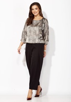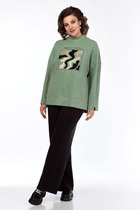 Стильный и модный женский комплект, состоит из бомбера и брюк. Бомбер полуприлегающего силуэта, выполнен из высококачественной ткани, по переду с застежкой на молнию. Горловина и низ бомбера декорирован довязом. По переду бомбер с накладными карманами и клапанами с пришивной металлической пуговицей, а также декорирован дизайнерской нашивкой. Рукав цельнокроеный, спущенный, с манжетой и патой, декорированной пришивной пуговицей. Брюки прямые, выполнены из высококачественной ткани, слегка зауженные к низу с манжетой. Пояс брюк полностью на резинке, с завязкой из шнура, выполненной из основной ткани, с металлическими наконечниками. В боковых швах брюк функциональные карманы. Модель удобная и практичная, отлично подойдет для ежедневной носки в жаркое время.