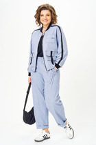 Стильный и мега крутой костюм, выполнен из премиального трикотажа Бифлекс (не скатывается и идеально держит форму). Жакет прямого силуэта, без подкладки. Перед жакета по горловине декорирован трикотажным довязом, что придает модели особую изящность. Жакет с накладными карманами и декорирован пришивным украшением, с застежкой на пуговицу. Рукав длиной 3/4, декорированы пришивным трикотажным лампасом. Брюки прямые, пояс на резинке, в боковых швах с функциональными карманами. Модель костюма стильная и практичная, займет почетное место любимой модели в вашем гардеробе, отлично подойдет для ежедневной носки и работы, удобно носить с кроссовками и любой классической обувью.