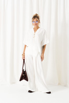 Юбка миди с глубокими встречными складками и разрезом по переду добавляет образу женственности. В боковых швах карманы. Юбка на подкладке.  Для максимально комфортной посадки по бокам пояса вставлена эластичная резинка. Сочетание мягкого верха и строгого низа создаёт баланс между комфортом и аккуратностью, делая комплект универсальным для офиса, повседневных выходов и стильных деловых встреч.