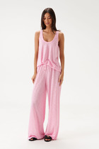 Брюки типа «банан», с притачным поясом на резинке. Передние части с косыми боковыми карманами. Задние части с талевыми выточками.