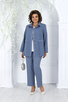 Блузон прямого, свободного силуэта, со спущенной линией плеча, плечевой шов смещённый на перед, с разно уровневым низом. Перед с рельефными швами заканчивающиеся разрезами. Спинка понизу отрезная. Рукава цельнокроеные с боковыми частями переда и спинки. По горловине бейка. Декорированный блузон по переду печатью.
