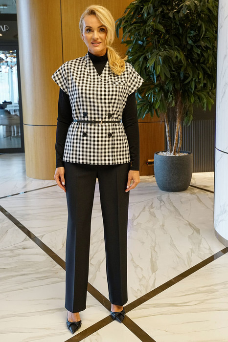 Комплект женский 3-х предметный состоит из жилета, блузы брюк.