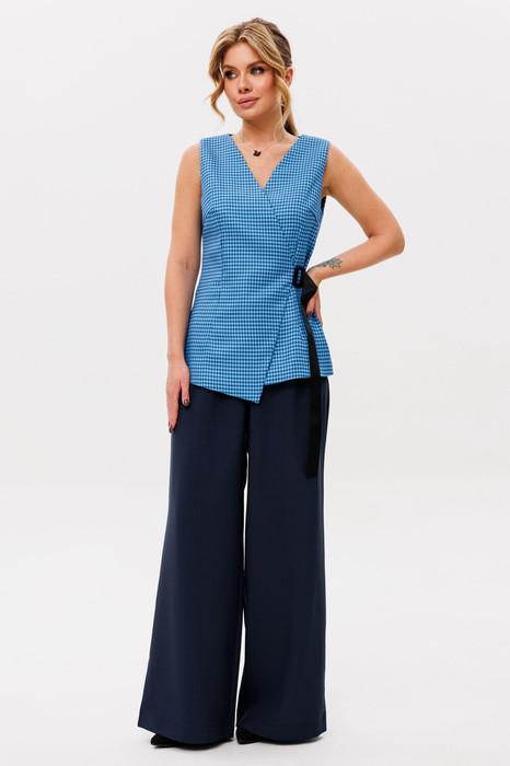 Костюм двухпредметный, состоящий из элегантного женского жилета, полуприлегающего силуэта с застежкой на декоративную тесьму, полукольцо и потайную пуговицу. Жилет на подкладке.