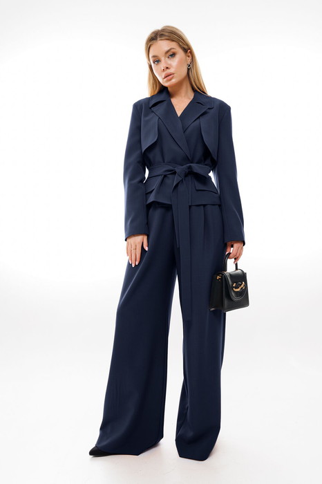Жакет прямого силуэта ,с воротником пиджачного типа. По переду и спинке отлетные кокетки. По переду в области талии декоративные клапаны. Жакет на хлопковой подкладке с поясом.