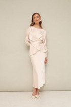 Юбка "Карго" прямого силуэта. Пояс на резинке с шнурком из основной ткани. В боковых швах наклонные карманы с декоративными клапанами. На уровне линии колена накладные карманы с клапаном. По левой стороне на клапане декоративная нашивка. По низу в боковых швах действующая кулиска. Сзади юбки разрез.