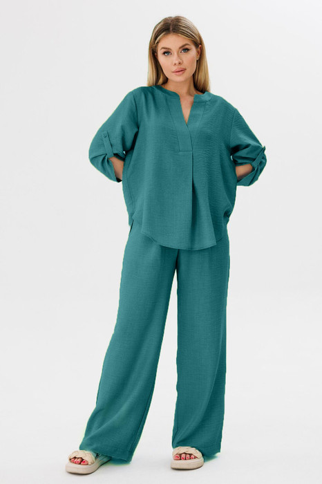 Блузка женская прямого силуэта с притачным рукавом. По переду V-образный вырез с притачной планкой и складкой. Рукав на пате. Низ фигурный.