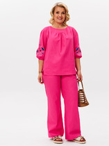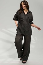 Брюки женские, свободного силуэта, на поясе со шлевками. Застежка на молнию и пуговицу.По переду заложены складки. По бокам действующие угловые карманы.