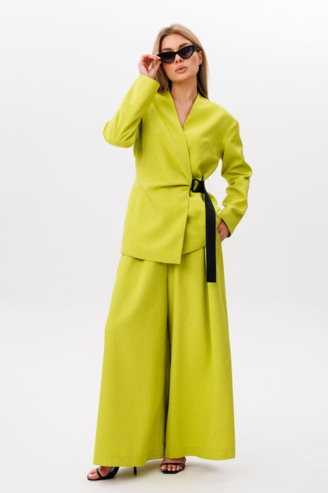 Костюм двухпредметный: состоящий из жакета и юбки-брюк.