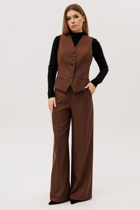 Жилет прилегающего силуэта, с V- образным вырезом, на подкладке. По переду рельефа карманы "листочки", застёжка на петли-пуговицы. По спинке вытачки.