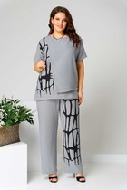 Комплект женский 2-х предметный (блузка, юбка). Отлично подойдет на любой тип фигуры, подчеркнет вашу женственность. Блузка из текстильной ткани прямого силуэта со спущенным плечом. Застежка- планка на петли и пуговицы. Воротник на отрезной стойке. Рукав одношовный, втачной, 3/4 длины с манжетой. В качестве декора- по манжете пуговицы, по низу блузки широкая подгибка с отстрочкой. Юбка расширенная к низу. Пояс на резинке. Длина блузки (50-54)- см, (56-60)- см . Длина рукава (50-60)-см. Длина юбки (50-60)-см.