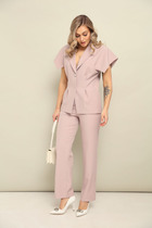 Женский брючный костюм — это идеальное сочетание стиля, комфорта и универсальности, которое станет вашим верным спутником как на деловых встречах, так и при повседневной носке. Изготовленный из высококачественной ткани, этот костюм обеспечивает легкость и приятные ощущения при носке. Костюм женский 2-хпредметный (жакет и брюки). Жакет из текстильной ткани прямого силуэта со спущенным плечом. По полочке идут грудовые выточки из бокового шва. Застежка ассиметричная. Воротник стойка. По спинке встречная складка. Рукав 3/4. По полочке идут отлетные накладные карманы с декором (термонаклейка). Брюки прямые, зауженные к низу за счет защипов. Пояс на резинке, по бокам карманы. Длина спинке:(48-52)-70см, (54-58)- 73см. Длина рукава:(48-58)-33см. Длина брюк (48-50) -93см, (52-58)-95см