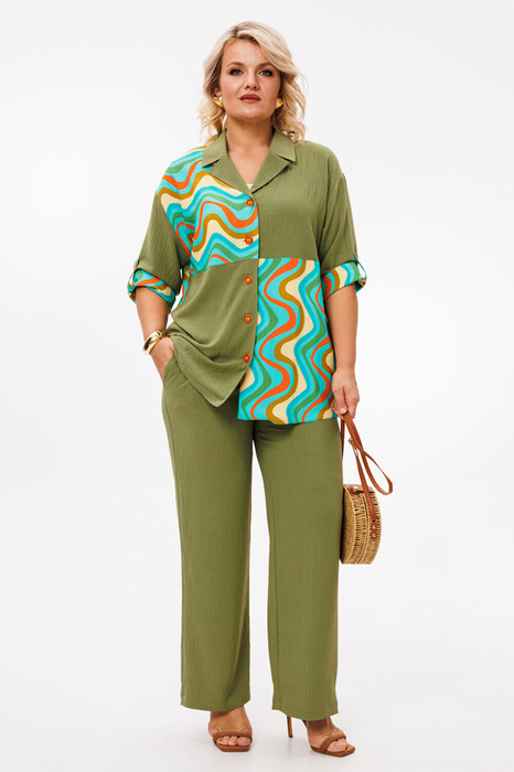 Оригинальный комплект от бренда Anastasia- идеальный выбор для любого случая. Этот комплект сочетает в себе элегантность и комфорт. Комплект женский 2-х предметный (жакет, брюки). Жакет прямого силуэта, на застежку петли и пуговицы. Воротник пиджачного типа, по полочке идут подрезы в шахматном порядке. Плечо спущенное, рукав 3/4 длины, с отложной манжетой которая фиксируется патой. Низ фигурный, спинка цветная. Брюки прямые, пояс на резинке, по бокам карманы. Комплект свободный, удобный. Длина спинки: (50-54)-73 см, (56-60)-76 см. Длина рукава:(50-54)-38 см, (56-60)-41 см. Длина брюк: (50-54)-101 см, (56-60)-105 см