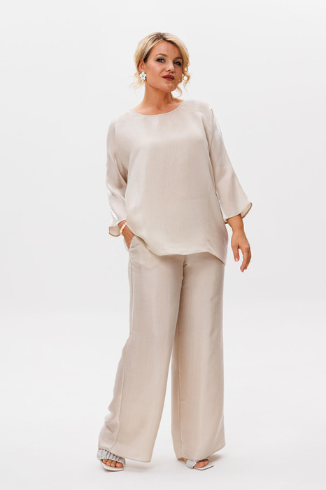 Оригинальный костюм от бренда Anastasia - идеальный выбор для любого случая. Костюм женский 2-х предметный (блузка, брюки) из легкой вискозной ткани с блеском. Блузка прямого силуэта с цельнокроеным рукавом. Брюки прямые, пояс на резинке, по бокам карманы. Костюм отлично подойдет как для повседневной носки, так и для праздничных выходов. Достаточно дополнить его соответствующими аксессуарами. Предметы комплекта легко будут сочетаться с вещами из Вашего гардероба. Длина блузки (по спинке): (48-52)-66см.,(54-58)-69см. Длина рукава (от горловины): (48-52)-57см., (54-58)-59см. Длина брюк: (48-52)-100см., (54-58)-103см.