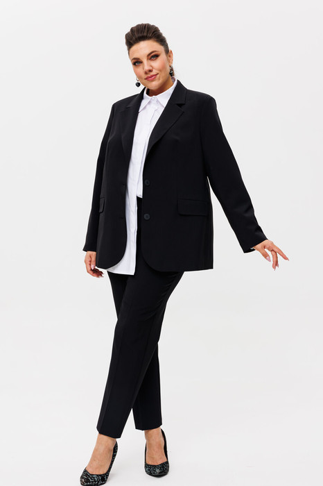 Костюм можно купить целиком или выбрать отдельно жакет 1471 и брюки 1413, а для особого случая предлагаем дополнить образ брюками палаццо 1400 из этой же коллекции.