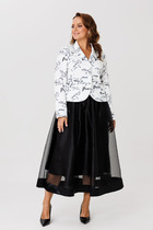 Асимметрия линий и продуманная свобода кроя создают образ, в котором гармонично сочетаются динамика и утонченность. Туника мягко струится по фигуре, ее миди-длина подчеркивает элегантность, а асимметричная застежка с петлями и пуговицами добавляет нотку неожиданности. Цельнокроеный короткий рукав сохраняет лаконичность, а воротник обрамляет горловину, придавая законченность силуэту. Разрезы по боковым швам дарят легкость движения, играя с воздушностью ткани.