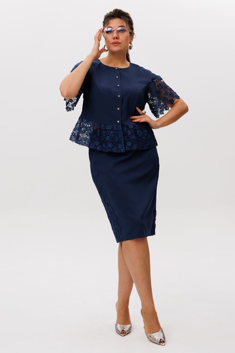 Юбка, слегка зауженная книзу, выгодно подчёркивает фигуру, сохраняя при этом комфорт и свободу движения. Боковые вставки с наложением кружева создают деликатный акцент, подчёркивая женственность линий. Застёжка в среднем шве сзади дополнена шлицей, обеспечивая удобство и элегантность в каждом шаге. Подкладка юбки гарантирует безупречное ощущение при ношении.