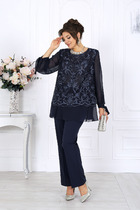 Костюм выполнен в глубоком оттенке *полуночного сапфира* — цвете, который сочетает в себе благородство тёмной синевы и загадочное мерцание драгоценного камня. Этот наряд станет идеальным выбором для тех, кто ценит элегантность, качество и неповторимый стиль.