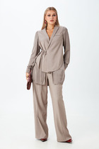 Брюки с притачным поясом, регулируемым шнурком и резинкой внутри, обеспечивают идеальную посадку и комфортную подтяжку талии. Карманы в боковых швах добавляют функциональность и позволяют хранить важные мелочи рядом с вами.