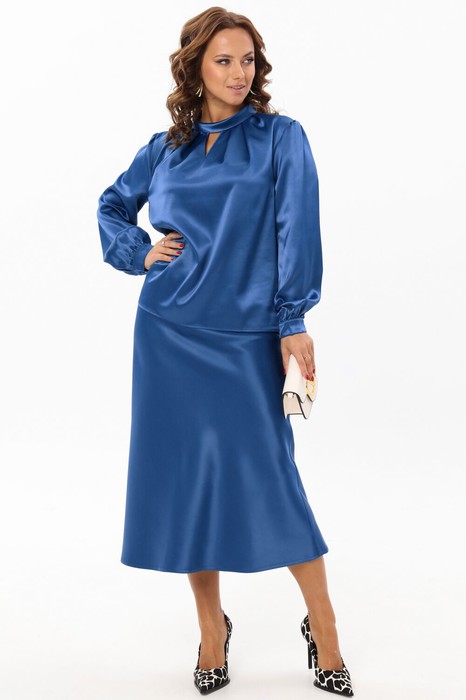 Нарядный женский комплект из гладкой ткани с атласной структурой украсит вас на любом праздничном или торжественном мероприятии.