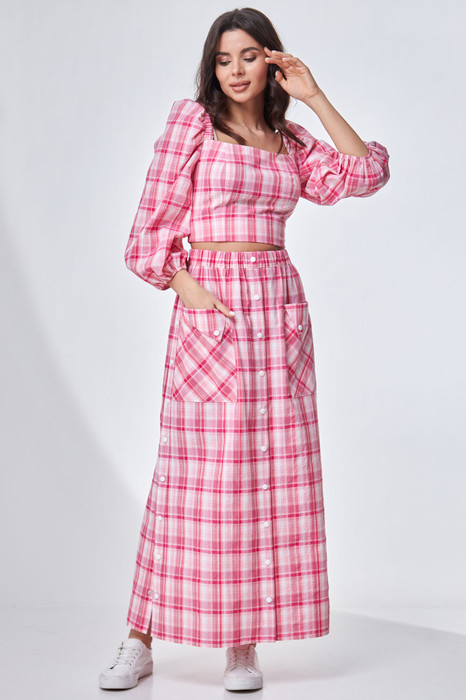 Эффектный летний комплект из хлопковой ткани с жатым эффектом, состоит из блузки и юбки. Подойдёт для офиса и повседневной носки, для прогулок и дружеских встреч.