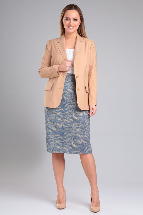 Элегантный женский комплект состоит из классических жакета и юбки-карандаш.  Отлично подойдет к деловому образу для офиса, учебы и работы.