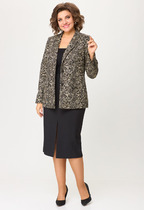 Комплект с шортами выполднен из трикотажного полотна серого цвета. Джемпер прямого широкого кроя, V-образный срез горловины, застежка центральная на петли пуговички, рукав втачной слегка спущен, по низу нашито декоративное кружево. Длина изделия по спинке 56 см, длина рукава от горловины 75 см. Шорты свободного кроя. Пояс на резинке. По передней части имитация застежки на 3 пуговицы. По низу нашито декоративное кружево. Длина 36 см.