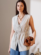 Удлиненный костюмный жилет в полоску с поясом из легкого хлопкового поплина