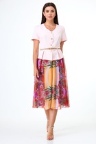 Комплект женский состоящий из жакета и брюк. Жакет прилегающего силуэта с застёжкой спереди на пуговицы, с отложным воротником с лацканами, с фигурным подрезом по переду и спинке и вставкой из сетки, с карманами по переду, с втачным рукавом. Изделие на подкладке. Брюки узкие, на поясе-кокетке, с застёжкой спереди на молнию и пуговицы, с боковыми карманами и стрелками.