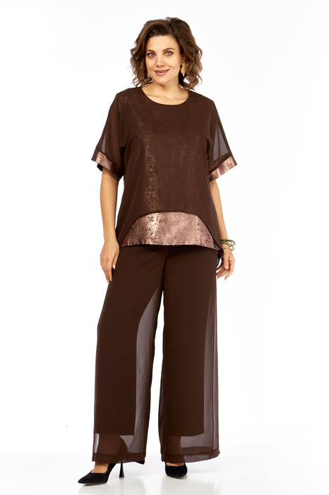Нарядный женский костюм состоит из двойной блузы и двойных брюк.